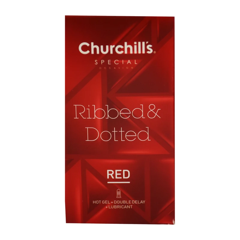 کاندوم چرچیلز مدل Ribbed & Dotted Red بسته 12 عددی